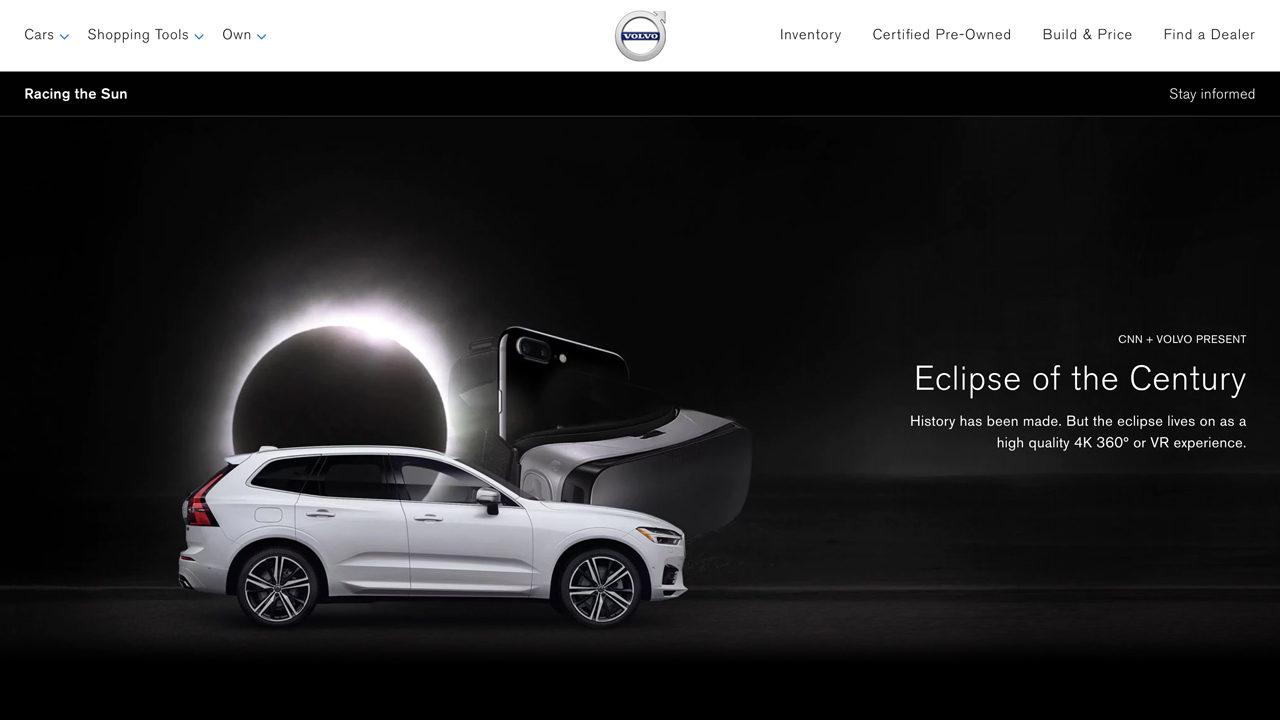 To highlight elements on the main campaign and showcase their new US factory, Volvo partnered with CNN to bring the 2017 solar eclipse to everyone with an unprecedented immersive digital experience on August 21.